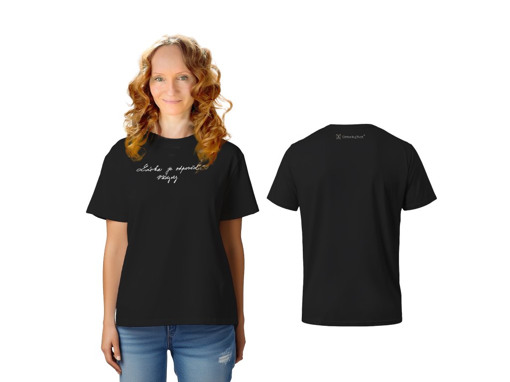 Tohle tričko je tvůj každodenní kompas. Pro chvíle, kdy se svět zdá přetížený, pro momenty, kdy ztrácíš rovnováhu. Láska je odpověď. Vždycky byla.