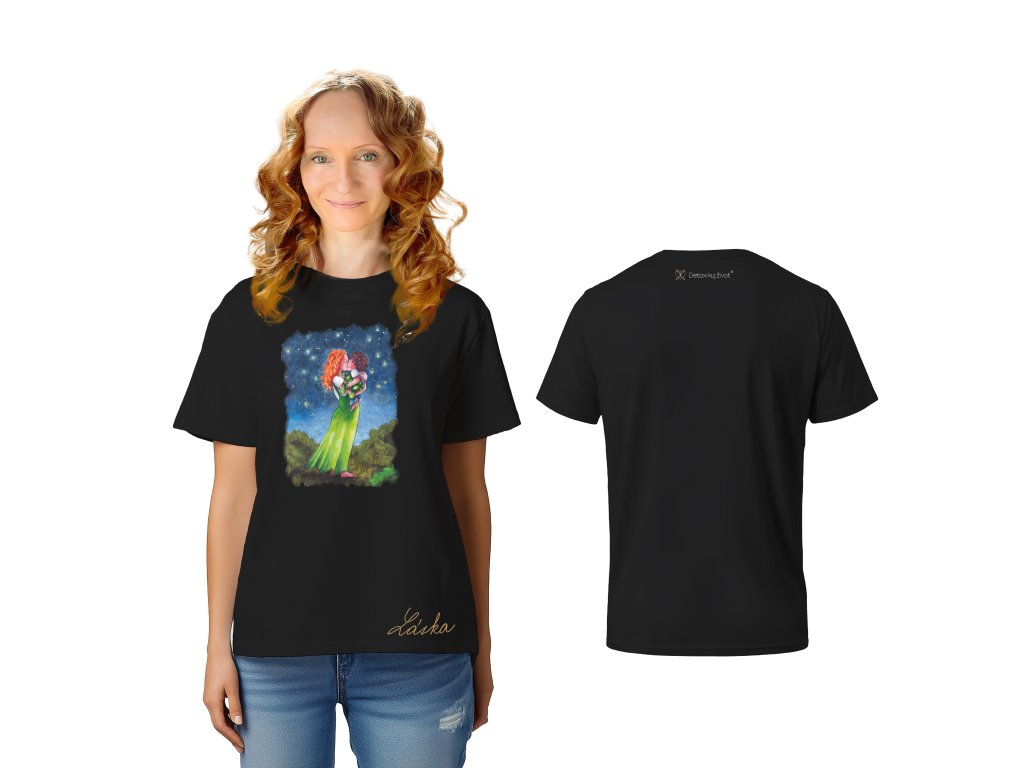 Tričko zobrazuje naši jedinečnou cestu, kde jsme si navzájem oporou. Pája mě učí trpělivosti, radosti z každého malého kroku a síle v obyčejných chvílích. Tento design je o lásce, která roste mezi námi s každým novým dnem. Pro každou maminku, která ví, že rodičovství je zázrak, který se děje ve chvílích ticha i smíchu, a pro každého syna, který ji vždycky bude mít po svém boku.