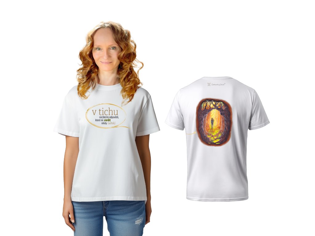 Pro koho je dámské tričko V TICHU NACHÁZÍM ODPOVĚDI, KTERÉ MI SVĚT NIKDY NEŘEKL?